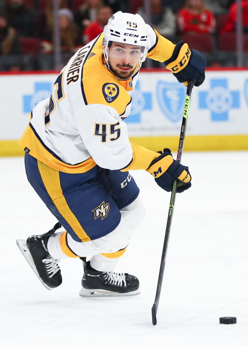 The Montreal Canadiens acquired defenseman Alexandre Carrier from the Nashville Predators for defenseman Justin Barron. |